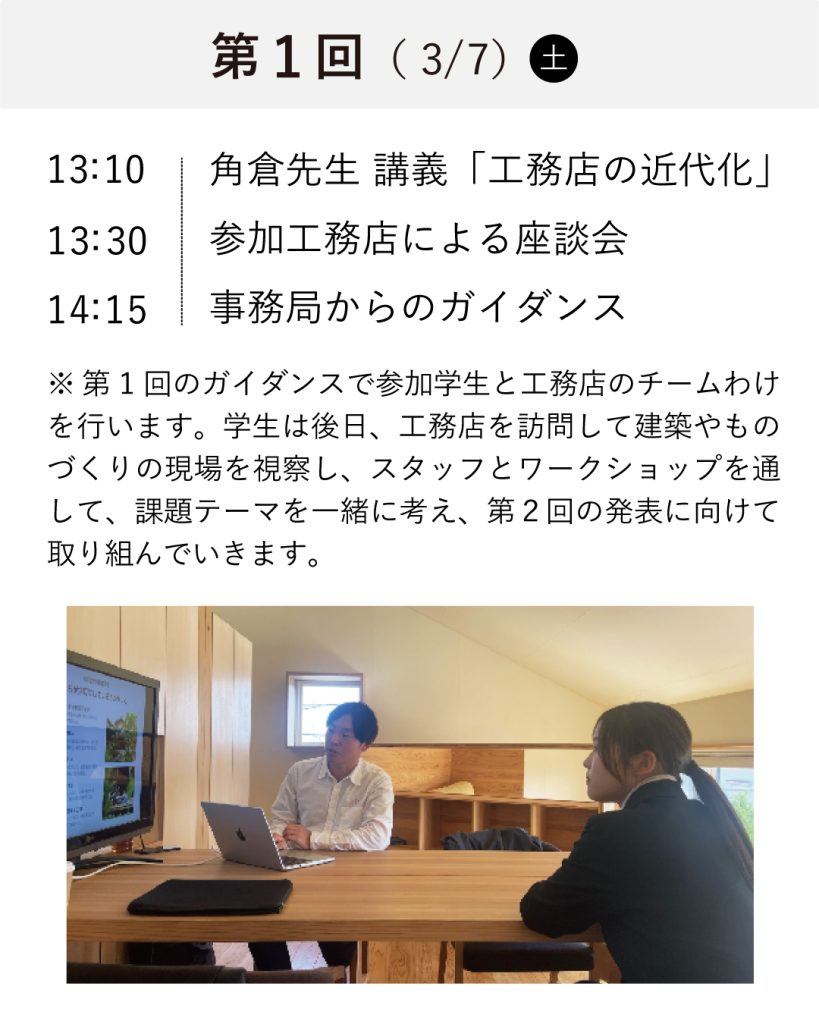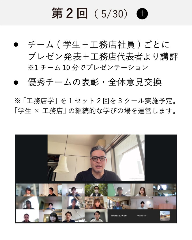 工務店学プログラム(1セット2回で「インプット→アウトプット」学生と工務店がともに学ぶ体験型セミナー)