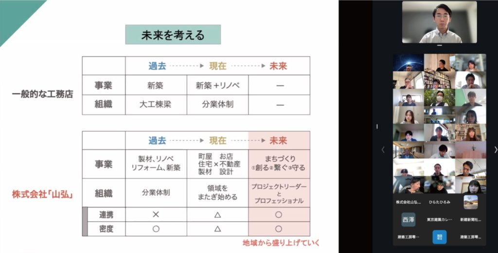 • 「工務店学」が、教授や各社の社長をはじめ、社員や参加学生など、様々な視点からこれからの工務店の在り方について考えるきっかけになっていて面白かった!フィールドバックをいただけたこともよかった